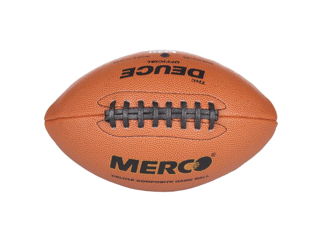 Replika míče na americký fotbal Merco Deuce Official je tréninkový míč ideální pro začínající a rekreační hráče ve věku 14+ let. Tréninkový míč Deuce je vyrobený ze syntetické PU kůže s porézním povrchem, který míči dodává vynikající přilnavost a má odolnou butylovou vzdušnici. Tento model má po nafouknutí délku 28 cm, průměr 16 cm a hmotnost v rozmezí 400 – 420 g. Upozornění: Míč vždy nafoukněte na doporučený tlak pomocí navlhčené jehly, jinak hrozí poškození míče.Dodatočné parametre