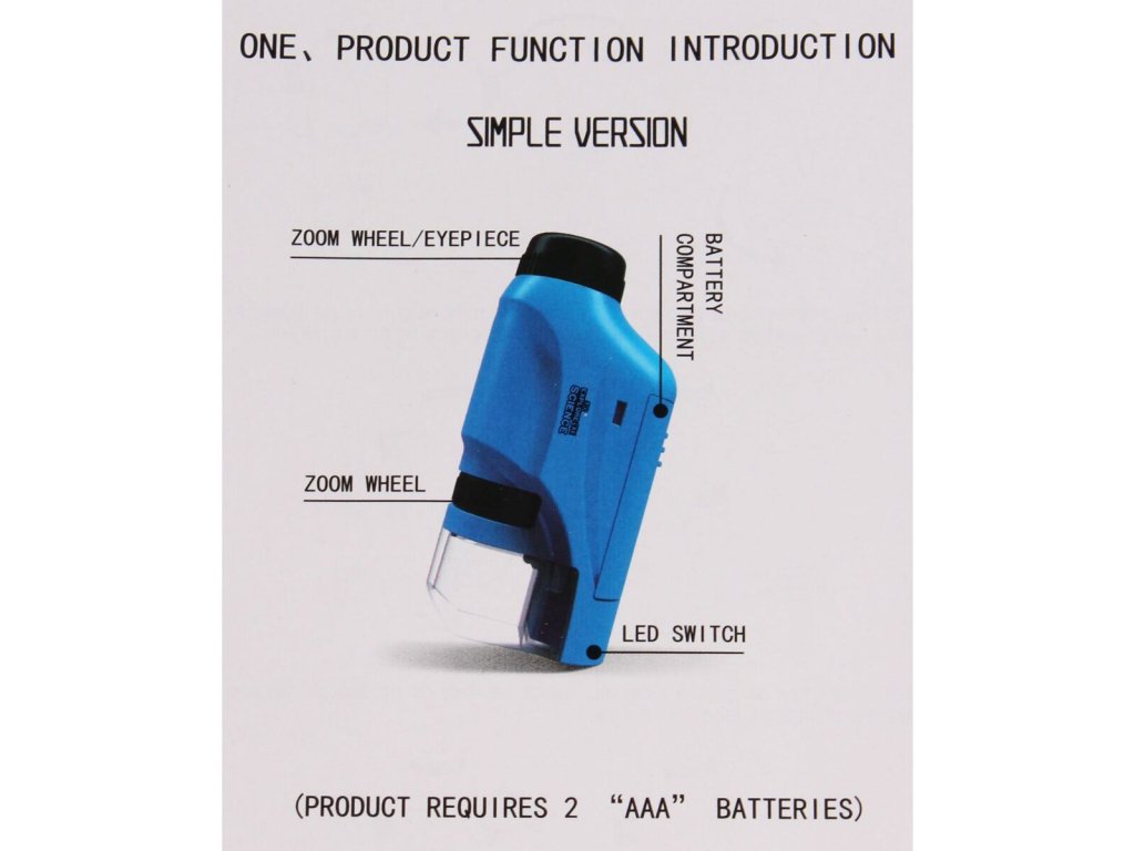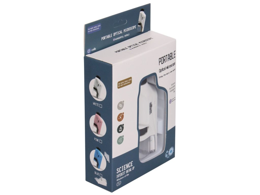 Kapesní mikroskop Merco Explorer 120x je určený pro začínající a hobby badatele. Díky svým malým rozměrům a nízké hmotnosti je mikroskop lehce přenosný a budete jej mít kdykoliv po ruce. Kompaktní a výkonný mikroskop nabízí zvětšení v rozmezí 60x - 120x s LED světlem, které je napájeno díky 2x AAA baterii (baterie nejsou součástí balení). Objevujte nový mikrosvět pomocí přenosného mikroskopu Explorer 120. - materiál: ABS - barva: bílá (fotky s modrou barvou jsou pouze ilustrativní) - LED světlo - rozměry: 10,5 x 5 x 3,5 cm - váha: 80 g - zvětšení: 60x až 120x - napájení: 2x AAA baterie (nejsou součástí balení) - pro rekreační použití Upozornění: Výrobek není vhodný pro děti mladší 3 let!Dodatočné parametre