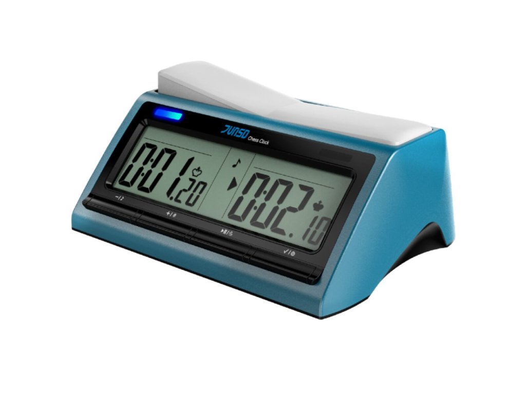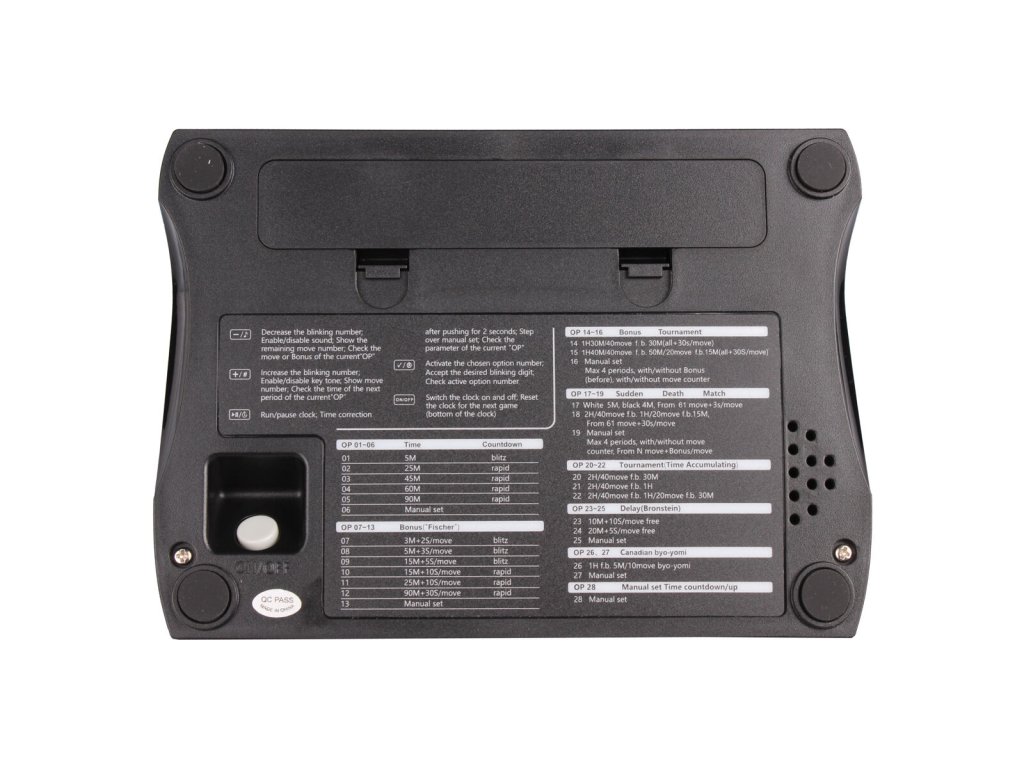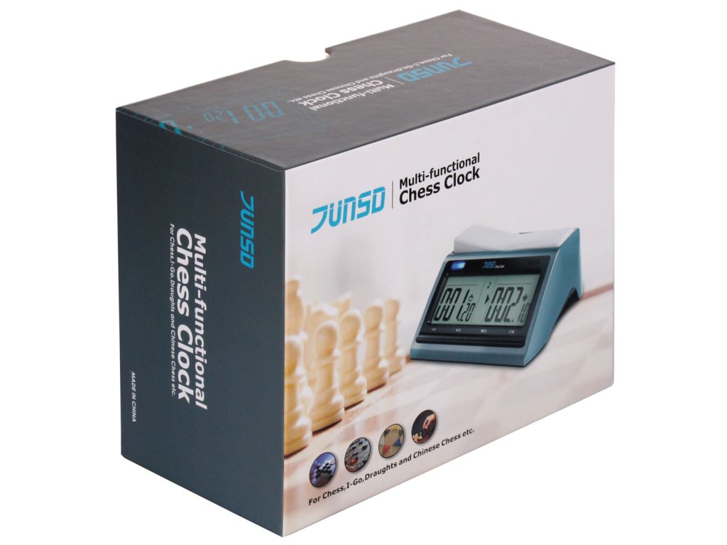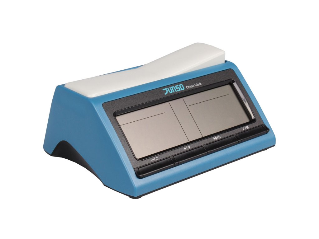 Digitální hodiny JUNSD JS242A pro šachové hráče všech úrovní - od úplných začátečníků až po profesionály. Hodiny vyrobené z odolného plastu se snadno ovládají a jejich nastavení je jednoduché a intuitivní. Přes svou malou velikost nabízí velký a přehledný LCD displej. Napájeny jsou dvěma bateriemi AA, které jsou součástí balení. - materiál: plast - rozměry: 15 x 11 x 6 cm - hmotnost: cca 290 g - velký LCD displej - 28 přednastavených časových režimů - použití japonského čipu EPSON IC – přesné měření, spolehlivost a odolnost proti rušení - napájení na 2x AA baterii (součástí balení)Dodatočné parametre