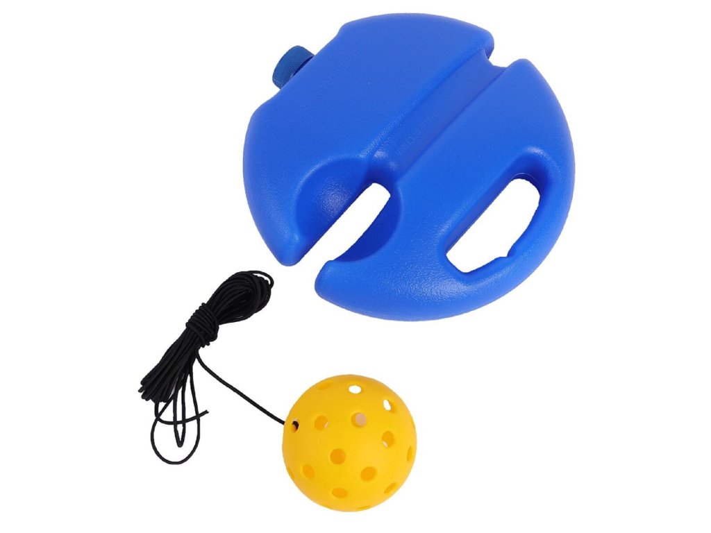 Trenažér Merco Pickleball Single je ideálním pomocníkem pro začínající i pokročilé hráče, kteří k sobě zrovna nemají parťáka a potřebují potrénovat techniku. Plastovou základnu s rozměry 20 x 5,5 cm lze naplnit vodou či pískem pro stabilitu. Pickleball míček připevníte k základně pomocí elastického provázku a můžete začít trénovat. Trénovat můžete kdekoliv, venku i v hale. S trenažérem Pickleball Single si zlepšíte svůj hráčský um. Upozornění: Foto je ilustrativní, barva míčku se může lišit. - materiál: PE - rozměry základny: 20 x 5,5 cm - průměr míčku: 74 mm - délka lanka: 4 m - hmotnost balení: 160 gDodatočné parametre