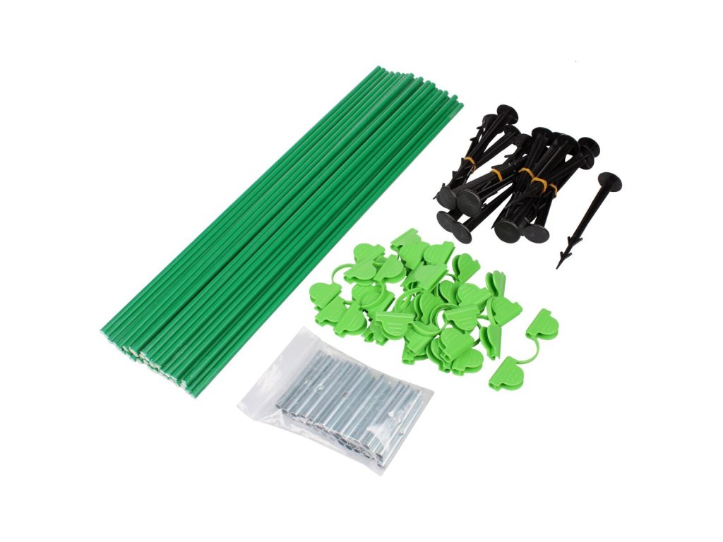 Praktická sada Merco Plant Hoop vám na zahradě pomůže ochránit vaše rostliny v záhonech před škodlivým hmyzem a ptáky. Pomocí tyček ze skleněného vlákna a ocelových spojek vytvoříte z jednotlivých oblouků podpůrnou konstrukci ve tvaru tunelu, na kterou přichytíte ochrannou síť (síť není součástí balení). Ke konstrukci můžete zakoupit ochrannou síť Garden Mesh. Postup je jednoduchý. Pružné tyčky spojíte ocelovými spojkami, ohnete je do oblouku a oblouk zapíchnete do záhonu. Tak pokračujete dále s dalšími oblouky dle potřeby, až vytvoříte tunelovou konstrukci. Na ní nasadíte ochrannou síť a připevníte ji k tyčkám pomocí plastových klipů. Aby síť držela pevně u země zajistíte jí připíchnutím k zemi pomocí plastových kolíků. Ze sady Merco Plant Hoop můžete sestavit až 6 oblouků (ze 6 tyček) o šířce cca 125 cm a výšce cca 97 cm, nebo 9 oblouků (ze 4 tyček) o šířce cca 90 cm a výšce 62 cm. Obsah balení: - 36 kusů tyček, délka 43 cm, průměr 5 mm, materiál: skelné vlákno - 30 kusů ocelových spojek, délka 6 cm - 18 plastových klipů - 20 plastových kolíků - ochranná síť není součástí balení.Dodatočné parametre