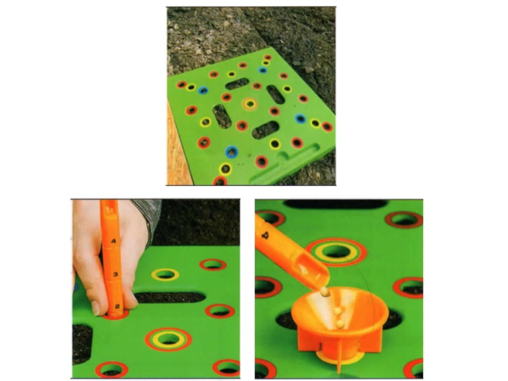 Merco Seeder je praktická pomůcka každého zahrádkáře (ať už začínajícího či zkušeného), který si chce ulehčit práci při sázení zahradních semen. Plastová šablona nabízí barevně rozlišitelné otvory, do kterých umisťujete semena různých druhů rostlin. Díky těmto otvorům si zajistíte rovnoměrné rozložení rostlin pro jejich lepší růst. Součástí balení je také plastová tyčka pro vyhloubení děr do potřebné hloubky dle sázené rostliny a malý trychtýř pro usnadnění sázení. Příklady sázení rostlin dle barevných otvorů naleznete níže v popisu. - materiál: plast - rozměry: 30 x 30 x 2,5 cm - váha: cca 320 g - pomůcka pro sázení semen, která ulehčuje práci, ale stále nezaručuje 100% úspěch úrody Příklady semen dle barev: - červená: řepa, mrkev, cibule, pórek, pastinák, ředkev, jarní cibulky, tuřín - modrá: kukuřice, pažitka, hlávkový salát, šalotka, slunečnice, česnek - oranžová: brokolice, růžičková kapusta, zelí, květák, lilek, papriky, brambory, jahody, rajčata - žlutá: fazole, červená řepa, zelí, celer, hořčice, cibule, hráček, sója, špenátDodatočné parametre