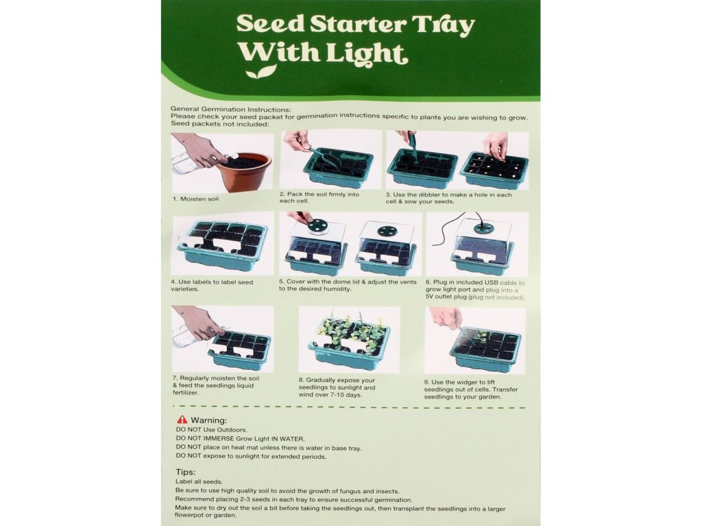 Rádi zahradničíte a pěstujete si vlastní rostlinky ze semínek? Pak je pro vás ideální minipařeniště Seedling Pot 12 Light. Tento malý skleníček se používá pro předpěstování sazenic, řízkování rostlin a klíčení semínek. Seedling Pot 12 Light je vyrobený z PET plastu a skládá se ze zelené podmisky, průhledné vložky na sazenice s otovory pro odtok vody, průhledného víka, na kterém se dá nastavit proudění vzduchu, LED osvětlení, 10 zápichů pro označení sazenic a plastového mini zahradnického náčiní. Každé minipařeniště má 12 otvorů pro sazenice a celý set Seedling Pot 12 obsahuje 5 kusů minipařenišť. Jedno minipařeniště má rozměry 18,5 x 16 x 14,5 cm (ŠxVxD) a velkou výhodou oproti konkurenčním minipařníkům je dostatečně vysoké víko. Návod: 1) Navlhčete zeminu, nejlépe rozprašovačem. 2) Plastovou mini lopatkou naplňte otvory zeminou. 3) Mini sázecím kolíkem vytvořte důlky pro semínka nebo řízky. Semínka umístěte do důlků. 4) Můžete použít bílé zápichy pro označení rostlinek. 5) Pařeniště přiklopte průhledným víkem a zeleným kolečkem nastavte proudění vzduchu (mikroklima). 6) Do zeleného kolečka zapojte USB kabel (a ten poté s adapterem do zásuvky - adapter není součástí balení), tím spustíte světlo. 7) Pravidelně vlhčete zeminu, můžete přidat i hnojivo. 8) Pařeniště umístěte na světlé a teplé místo. 9) Pro vyjmutí sazenic můžete využít druhý přiložený mini nástroj. Tipy: Označte si všechna semínka. Použijte kvalitní zeminu, můžete se tak vyhnout případným škůdcům a plesnivění rostlin. Doporučujeme do každého květníčku zasadit 2-3 semínka, abyste zvýšili šanci na úspěšné pěstování. Před vyjmutím sazenic z květníčků nechte zeminu mírně proschnout, půjdou pak lépe vyjmout. Obsah balení: 5 ks zelených podmisek 5 ks průhledných vložek s květníčky (1 květníček má rozměr 3,8 x 3,8 x 5,5 cm) 5 ks průhledných víček 5 ks koleček s LED světlem pro úpravu mikroklimatu v pařeništi 10 ks štítků na označení rostlin 2 ks mini zahradního náčin 1 ks USB kabelu s 5 koncovkami Materiál: PET plastDodatočné parametre