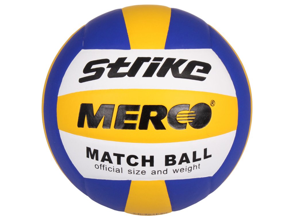 Volejbalový míč Merco Strike je tréninkový míč vhodný pro hru uvnitř i venku. Měkčený polyuretanový (PU) plášť míče je na dotek měkký a vhodný pro hru i v ne příliš příznivých klimatických podmínkách. Vnější plášť je vyroben z 18 panelů, jejichž lem je pevně lepený dohromady speciální technologií za vysoké teploty. Takové zpracování minimalizuje absorpci vlhkosti a umožňuje stabilně přímý odraz a let vzduchem. Vzdušnice míče je chráněna tenkou vrstvou EVA pěny. To zvyšuje nejen celkovou pevnost míče, ale také přispívá k jeho měkčímu doteku. Dobře chráněná vzdušnice si dlouhodobě udržuje svůj pravidelně kulatý tvar, živý odraz i tlak. Míč s barevně moderním designem je vyrobený podle oficiálních parametrů s obvodem 65 – 67 cm a hmotností 260 – 280 gramů. Pokud hledáte dostupný míč pro Vaše volejbalové aktivity, pak jste našli ten správný. Upozornění: Míč tlakujte pomocí navlhčené jehly na úroveň uvedenou na míči (4 – 5 lbs/in2).Dodatočné parametre