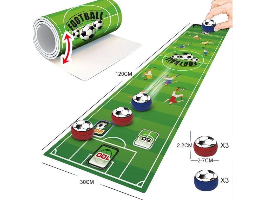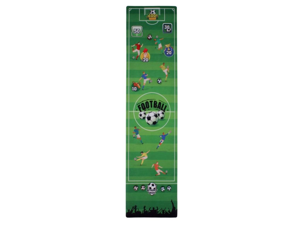 Merco Table Football je jednoduchá stolní společenská hra, při které si užijí spoustu zábavy jak děti, tak dospělí. Posouváním hracích kamenů v podobě fotbalových míčů s kovovou kuličkou na spodní části se na filcové hrací ploše trefuje fotbalová branka a další cíle na hřišti s různými bodovými ohodnoceními. Tým, který trefí více branek, nebo bodovaných oblastí, vyhrává. Hra je uložena v praktickém balení, takže je snadno přenosná a vy si jí můžete na rovném povrchu zahrát kdekoliv a kdykoliv. Užijete si chvíle zábavy i napětí se společenskou hrou Merco Table Football. Obsah balení: - 1 x hrací plocha z filcového materiálu, rozměr: 120 x 30 cm - 6 x plastový hrací kámen s kovovou kuličkou. Ve dvou barvách, průměr kamene 2,5 cm - Rozměr balení: 33 x 7 x 7 cm - Váha balení: 245 g Pravidla hry: 1. Rozdělte se na dva týmy, každý tým má 3 hrací kameny ve stejné barvě. 2. Rozlosujte, který tým bude začínat. 3. Posunutím hracího kamene se snažte trefit branku nebo jiné bodované části hracího pole. 4. Po každém pokusu se týmy střídají. V další kole začíná ten tým, který v předchozím kole získal více bodů. 5. Body se počítají pouze pokud trefíte bodovanou část. Platný je i pokus, když trefíte pouze okraj bodované části. 6. Pokud trefíte symbol červené karty, body se odečítají. 7. Hra končí po použití všech kamenů a spočítáním bodů. Můžete si však zvolit, že budete hrát na více kol a body spočítat až po dohrání všech kol. Vítězí tým s více body. Varianta - obranná hra: Obránce rozmístí své tři míče v zadní polovině hřiště, jeden míč umístí do oblasti 100 bodů a zbylé dva míče jako obránce. Útočící strana musí použít své tři míče k tomu, aby odpálila míč bránící strany mimo bodovací oblast. Po útoku a obraně si obránci a útočníci vymění pole a pokračují ve hře. Za úspěšnou obranu nebo útok se zapisuje 1 bod a vyhrává tým, který jako první získá 10 bodů. Hra je určena pro 2-6 hráčů a je vhodná pro děti od 6 let.Dodatočné parametre