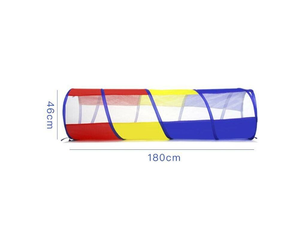 Všechny děti si zamilují prolézací tunel Tunnel Color. Lehký a skladný tunel zprostředkuje dětem spoustu bezpečné zábavy a usměrní jejich ohromnou energii. Prolézačka navíc rozvíjí koordinaci rukou a nohou a stimuluje celkovou pohyblivost, která je tak důležitá pro zdravý rozvoj dětí. Barevná stěna jednovrstvého tunelu je vyrobena z prodyšné polyesterové látky, síťoviny a zapošitého spirálového drátu. Délka tunelu je buď necelých 180 cm nebo necelých 150 cm v závislosti na preferovaném modelu. Tunnel Color se snadno rozloží i sbalí během několika sekund do cestovní brašny a dobře drží svůj původní tvar. Lehká tkanina se snadno čistí, stačí použít vlhký hadřík. Pestrobarevný tunel je dostupný ve dvou rozdílně barevných kombinacích, a to červená-modrá-žlutá (180 cm) a fialová-zelená-tyrkysová (150 cm). Všechny modely mají jeden průměr 45 cm. Získejte červený tunel s modrými a žlutými prvky nebo fialový se zelenými a azurově modrými místy a zprostředkujte dětem pestrou zábavu na zahradě nebo doma. Upozornění: Nepoužívejte prolézací tunel na hrubých a drsných plochách, jako je beton a dlažba.Dodatočné parametre