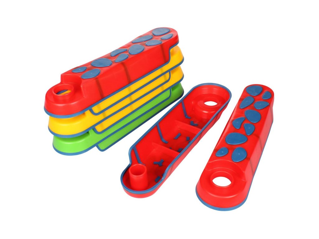 Motorická dráha Merco Twirl Walk Set je jednoduchou pomůckou pro děti a jejich trénování koordinace pohybu a rovnováhy. Set se skládá z osmi různobarevných dílů, které lze do sebe spojit a natáčet pro vytvoření dráhy. Spodní a horní části jsou pogumované, díky čemuž vzniká menší tření na hladkých plochách a snižuje se tak riziko uklouznutí. Celou sadu lze stohovat na sebe pro snadné skladování. Motorická dráha Merco Twirl Walk Set představuje praktický způsob jak u dětí rozvíjet rovnováhu, koordinaci a motorické dovednosti zábavnou formou. Upozornění: Výrobek není vhodný pro děti do 3 let! Vždy používejte pod dohledem dospělé a zodpovědné osoby. - materiál: PE plast, guma - 8 částí, které lze do sebe spojit - rozměry jednoho dílu: 35 x 9 x 4,5 cm (délka x šířka x výška) - hmotnost sady: cca 1,5 kg - jednoduché uskladněníDodatočné parametre