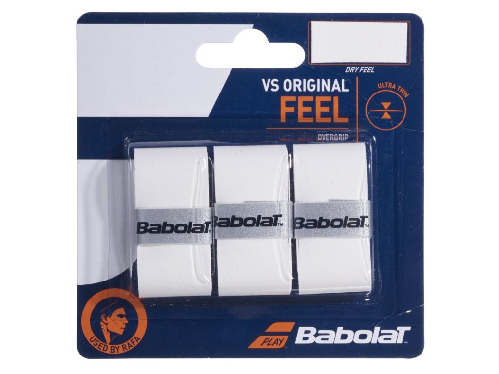 Extra tenký, citlivý a suchý overgrip, Babolat VS Original používá Rafael Nadal. Tenká netkaná vrstva uvnitř omotávky umožňuje velmi rychlou absorpci potu. Díky tomu budete moci hrát každý bod s plnou jistotou, protože víte, že vám raketa nevyklouzne z ruky. Při vývoji jednoho z nejtenčích a nejsušších overgripů dbal Babolat na to, abyste s modelem VS Original ucítili každý obrys gripu vaší rakety. - síla: 0.43 mm - netkaná textilie 100% PET - absorpční úroveň: 4/5 - balení 3 ksDodatočné parametre