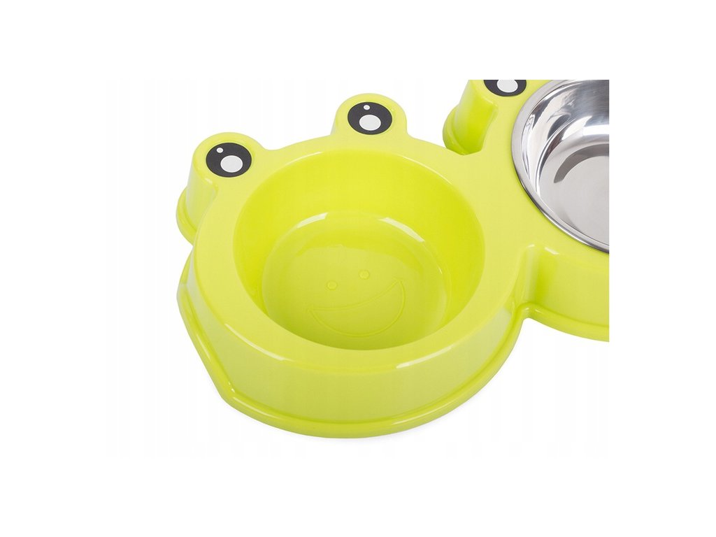 Miska pro psy a kočky dvojitá, nerezová, 2x300ml - žába zelená, 19108_Z