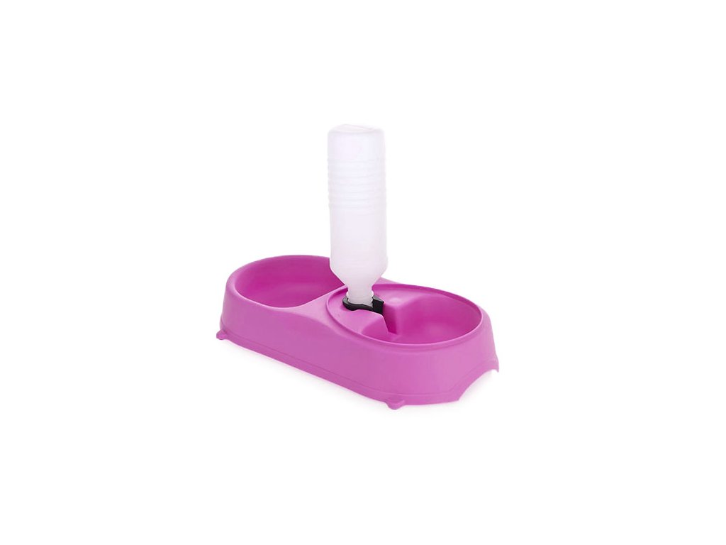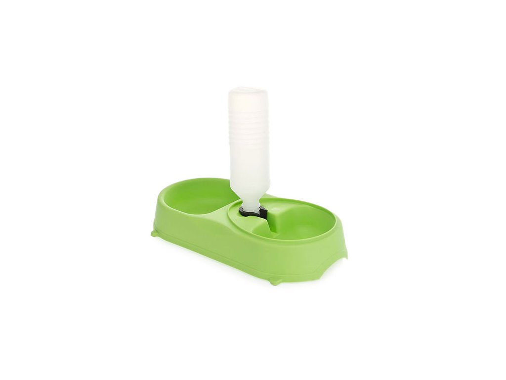 Dvojitá plastová miska s praktickým dávkovačem vody poskytne Vašemu mazlíčkovi stálý přístup k čerstvé vodě během nepřítomnosti členů domácnosti.
