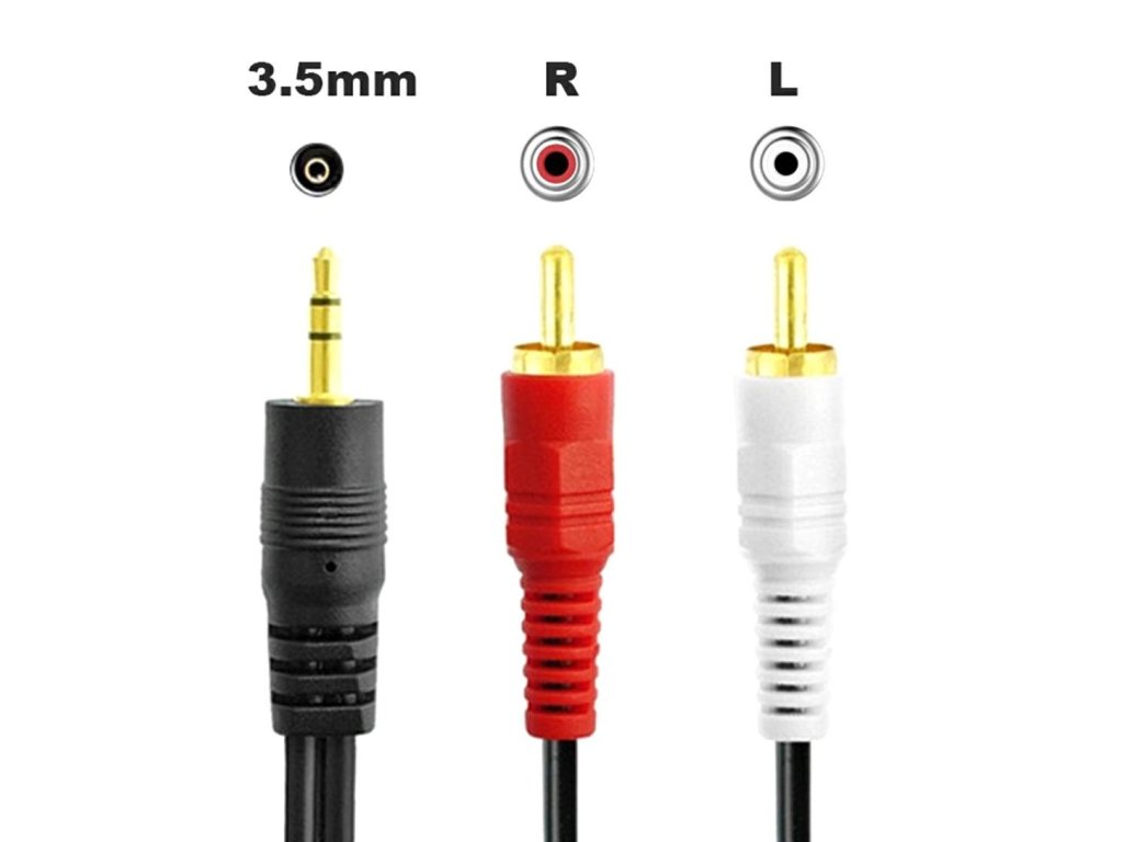 - Kabel umožňující přenos zvukových signálů mezi různými zařízeními, např. MP3 přehrávači, videokonzolemi, televizory, DVD přehrávači, herními konzolemi a audio zesilovači.
