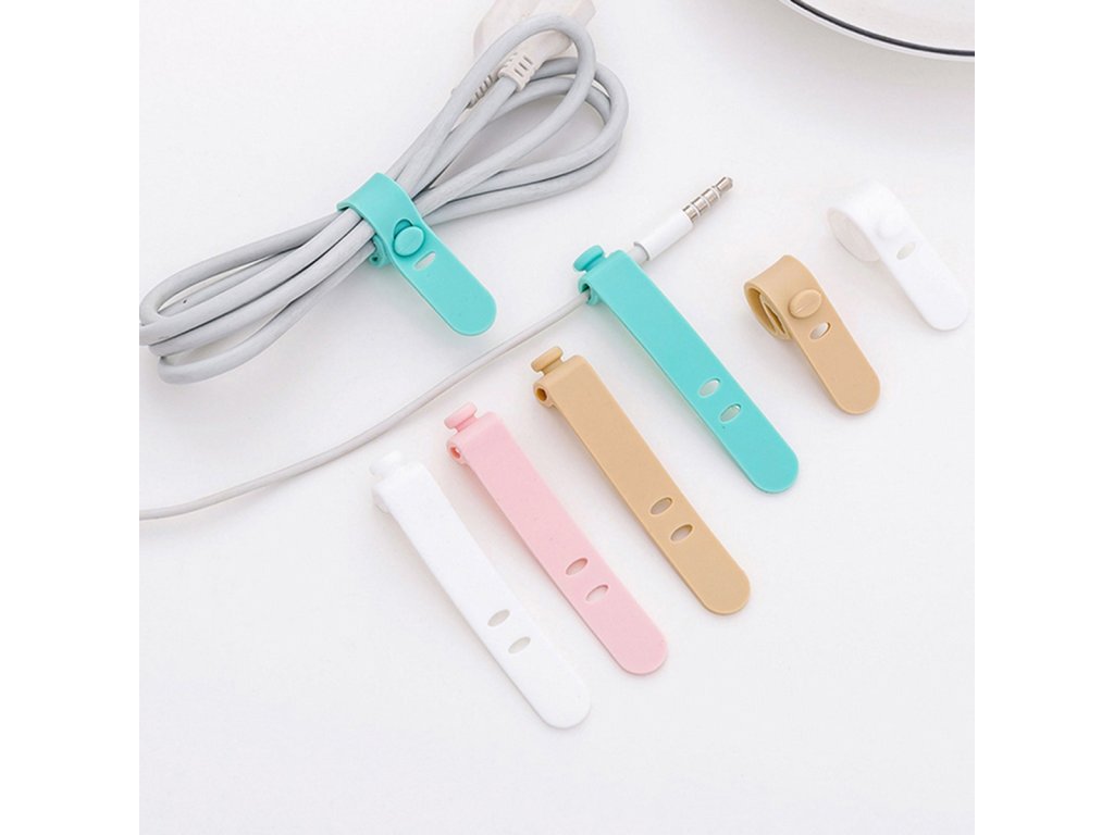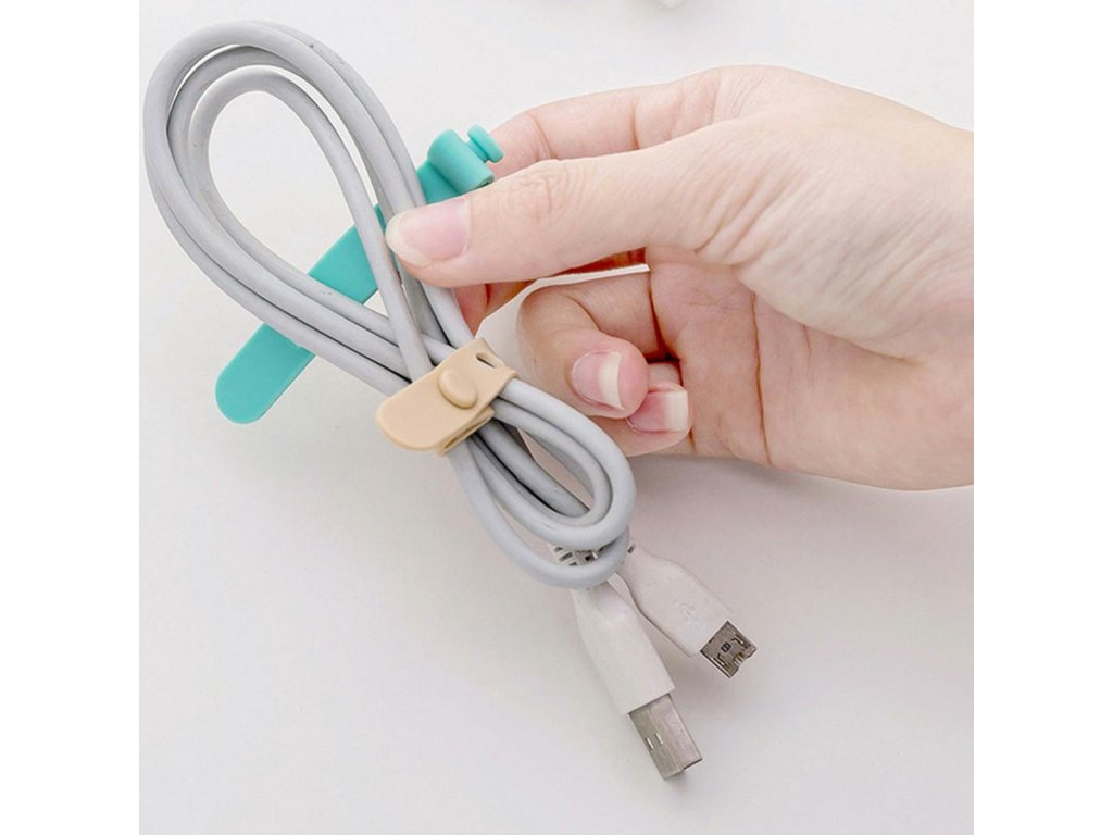 - Sada pružných silikonových spon pro organizaci kabelů.