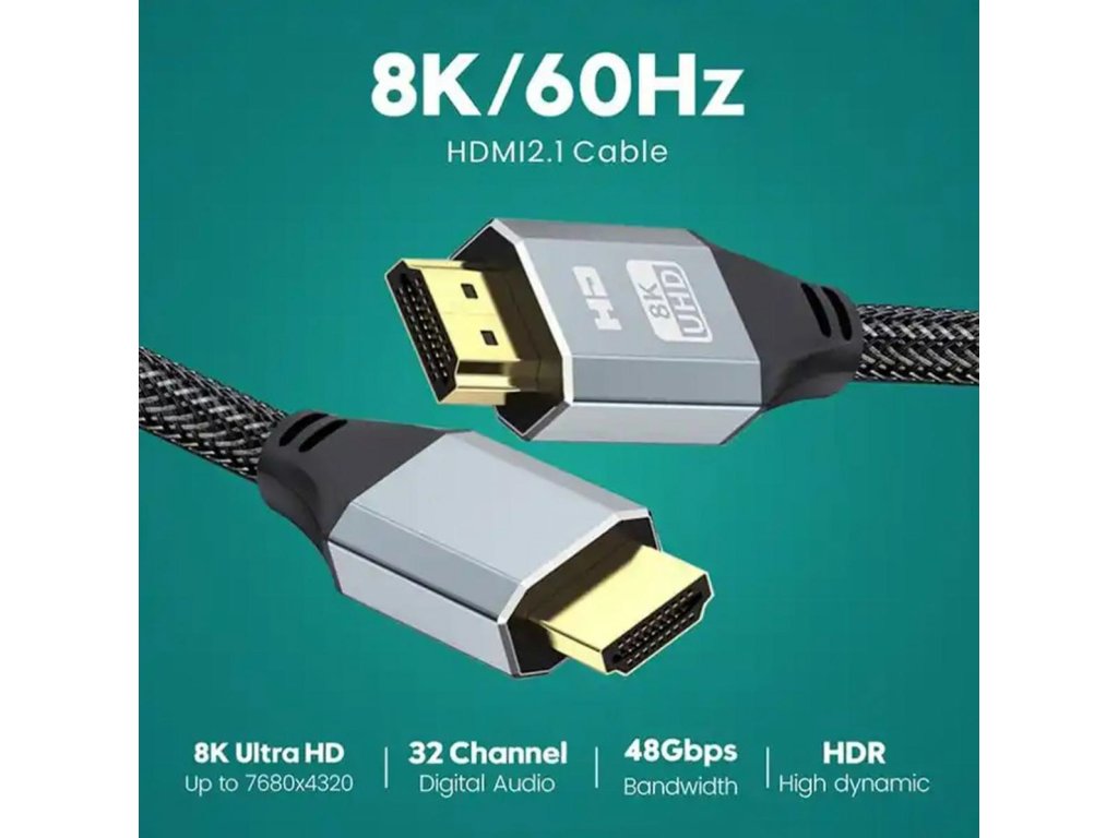 Profesionální HDMI - HDMI kabel (19-pin) ve standardu 2.1. Navrženo pro přenos velmi kvalitního obrazu a 8kanálového zvuku. Rychlý přenos v kvalitě až 8K UHD (rozlišení 7680 x 4320 pixelů)! Umožňuje přenos dat rychlostí až 48 Gb/s!Vlastnosti a specifikace produktu: