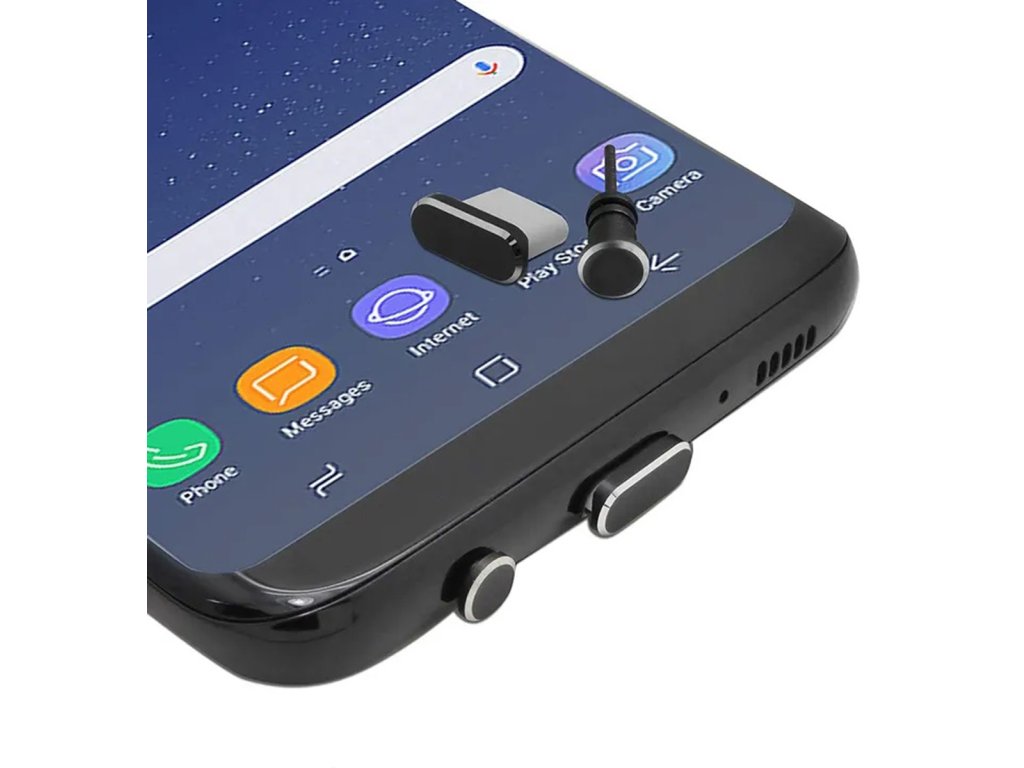 Sada krytek, které chrání porty elektronických zařízení před prachem a nečistotami. Protiprachové krytky účinně zakryjí porty USB-C a AUX (3,5 mm jack).