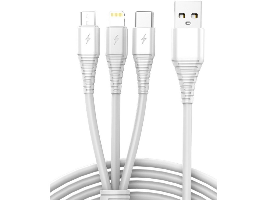 USB kabel 3v1 micro USB, USB-C, lightning 1m bílý VA0122 Vayox- Kabel podporuje rychlé nabíjení 3A