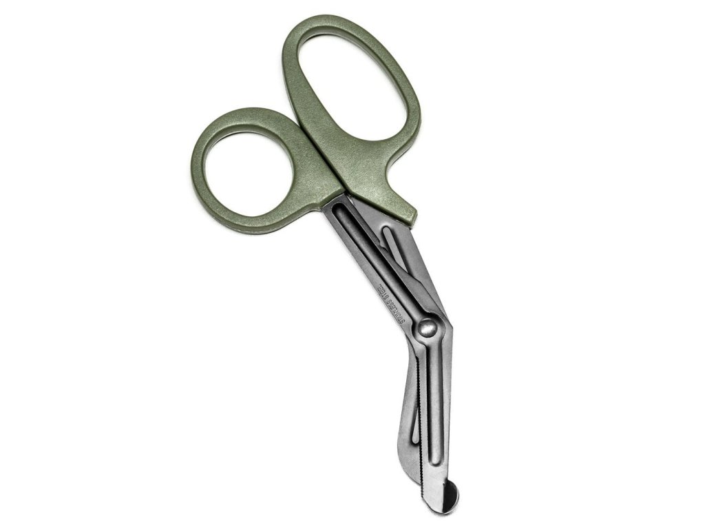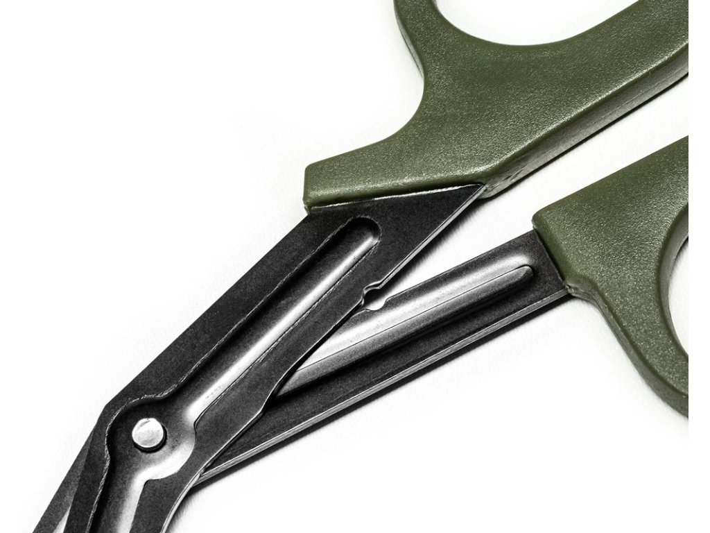 Taktické nůžky se zoubkovanou čepelí pro nouzové použití. Snadné stříhání látky, pásky, bezpečnostního pásu nebo obvazu. Bezpečnostní tvar se zakřiveným ostřím zajišťuje, aby nedošlo k pořezání pacienta. Skvělý dárek pro zdravotníky, turisty, rybáře atd.