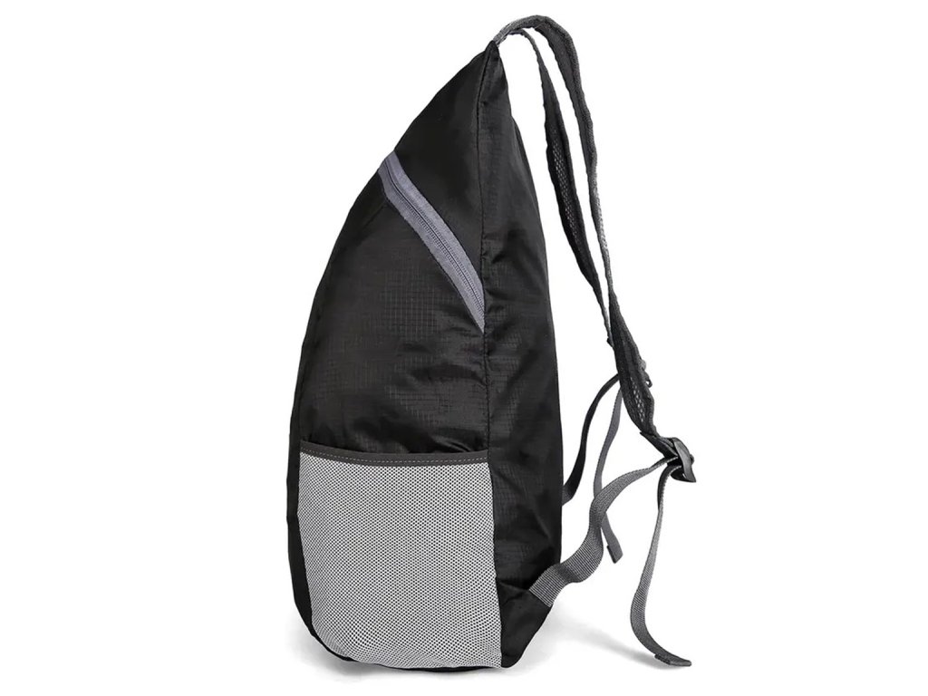 Lehký a funkční batoh, který lze složit. Má velkou hlavní přihrádku a další boční kapsu pro pohodlné přenášení láhve s vodou nebo deštníku. Pevný zip zabraňuje vypadnutí obsahu. Univerzální styl bude dobře fungovat jak při každodenním použití, tak ve formálnějších situacích.