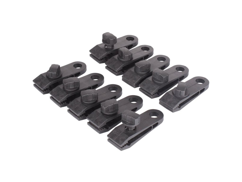 Pokud potřebujete důkladně vypnout stan před bouřkou a úchyty už nestačí, ve stanové plachtě jsou už vytrhaná upevňovací očka, nebo třeba jen chcete nad sebou napnout celtu mezi stromy, aby vás při spaní pod širákem nepřekvapila ráno rosa, pak určitě oceníte univerzální klip Clip 10. Je vyroben z pevného plastu a jeho použití je velmi jednoduché. Povolíte plastový šroub, lem stanu nebo jakékoli pevnější plachty sevřete do ozubeného konce klipu, utáhnete pevně šroub a do očka na druhém konci přivážete napínací lanko nebo přitlučete kolík a plachtu napnete. Klipy nabízíme v sadě po 10 kusech Rozměr jednoho klipu : š x d x v : 2,5 x 8 x 1,5 cm Váha jednoho klipu : 0,03 kg Váha celého balení : 0,280 kg Materiál : tvrzený plastDodatočné parametre