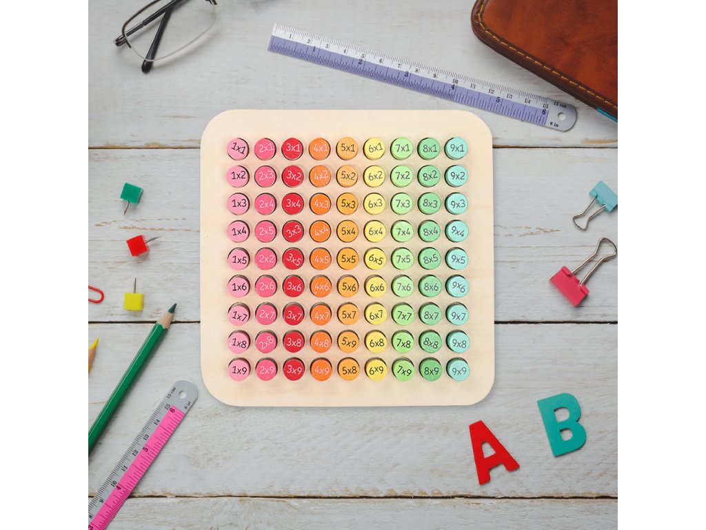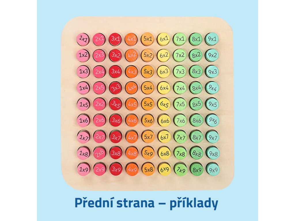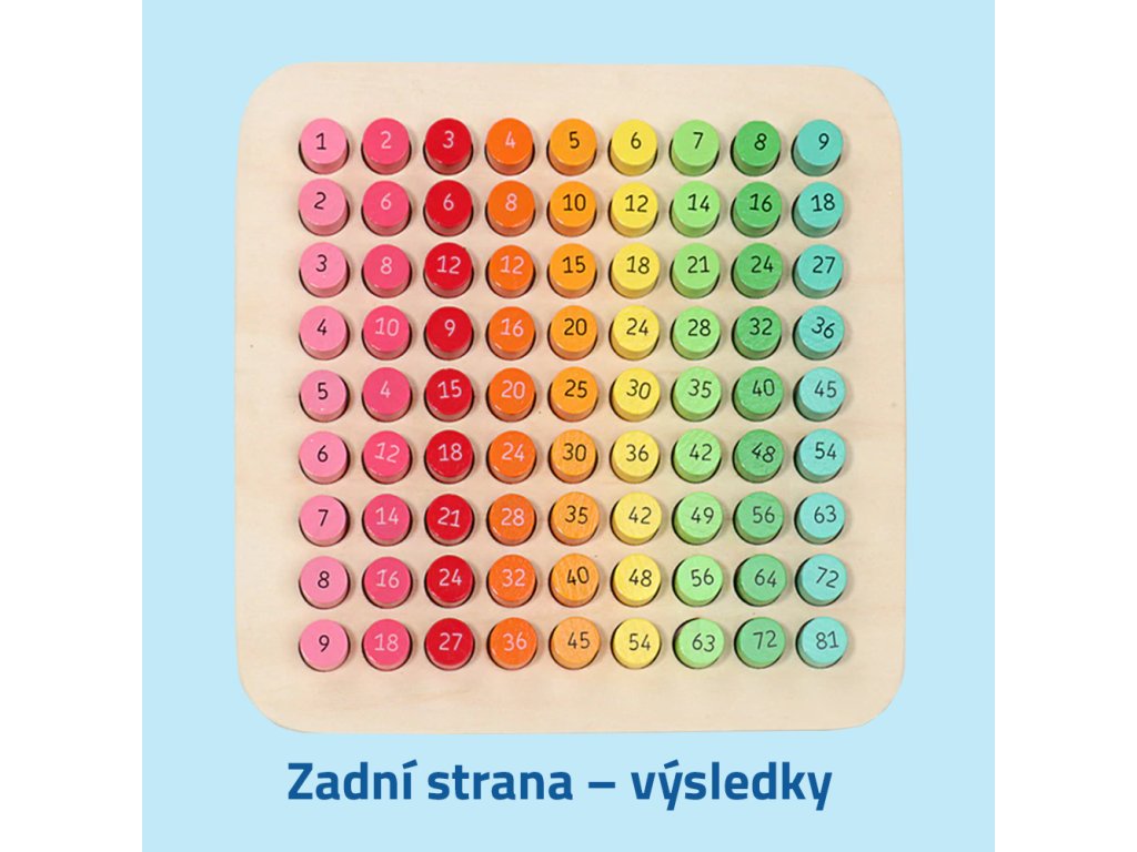 Hravé a jednoduché učení? Díky dřevěné tabulce s příklady to zvládnete! Pomozte svým dětem při učení této základní matematiky, pomocí počítadla jim připravíte zábavné učení. Dřevěné počítadlo obsahuje celkem 81 příkladů. Z jedné strany dílku je vždy příklad, z druhé strany výsledek. Můžete tak ihned kontrolovat, zda byl výsledek správný.