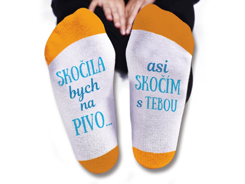 To chce klid a nohy v teple! I odpočívat se dá stylově. Pořiďte sobě i svým blízkým bavlněné ponožky s vtipným textem „Skočila bych na pivo. Asi skočím s tebou.“ Hoďte nohy na stůl a dejte každému na vědomí, na co právě myslíte.
