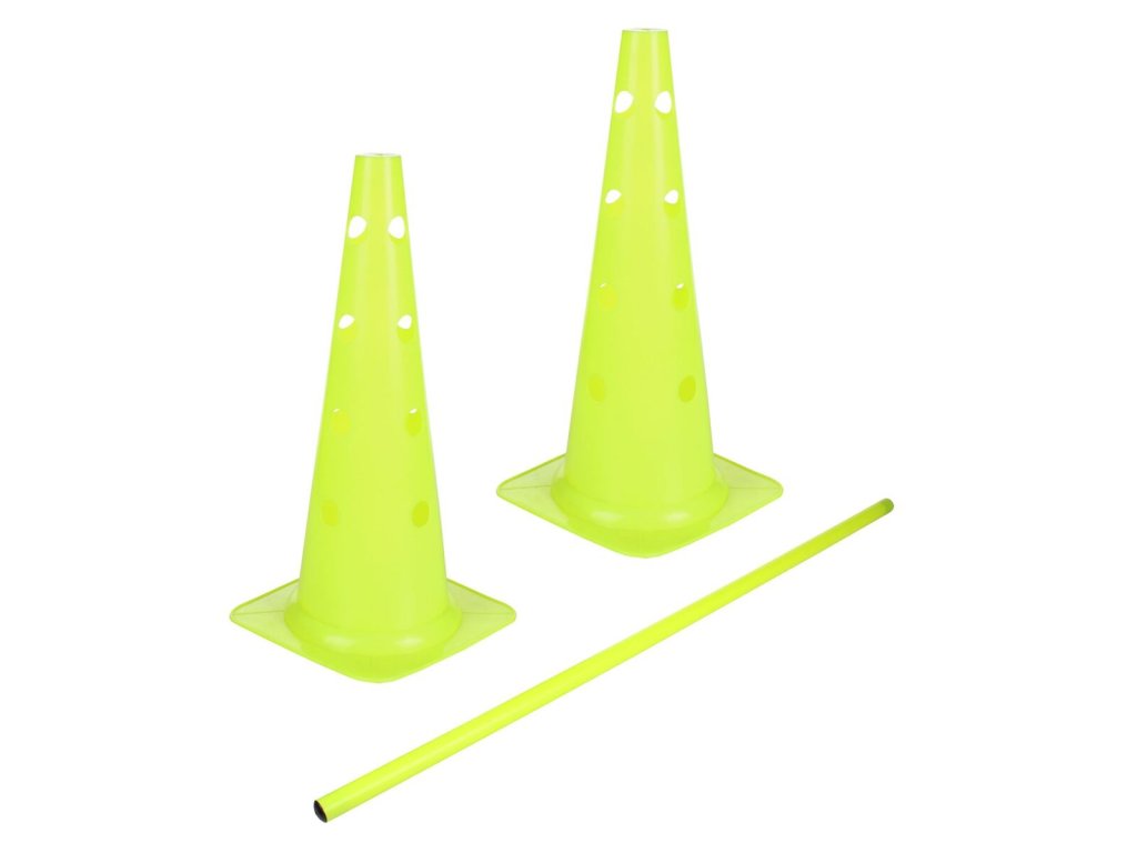 Překážková Sada Neon HS 12 ve výrazné neonově žluté barvě je jednoduchá a praktická víceúčelová pomůcka pro vytvoření překážkové nebo slalomové dráhy na jakémkoli povrchu ve vnitřním nebo venkovním prostoru. Dva plastové kužely s otvory ve čtyřech různých výškách (12,22,30,39 cm) můžete použít pro vyznačení tréninkové dráhy nebo je spojit plastovou tyčí o průměru 25 mm a délce 100 cm a vytvořit tak překážku v různých výškách. Při pořízení více kusů sad je můžete různě kombinovat a postavit tak velmi pestrou agility dráhu pro koordinační trénink. Nabízíme také v sadě po 6 kusech, kombinovat můžete i s jinými typy agility překážek a pomůcek. Obsah balení: - 2 x kužel s otvory (výška 47 cm, základna 22 x 22 cm, váha 1 kusu: 300 g) - 1 x tyč (průměr 25 mm, délka 100 cm, váha 200 g) Materiál: plast PVCDodatočné parametre
