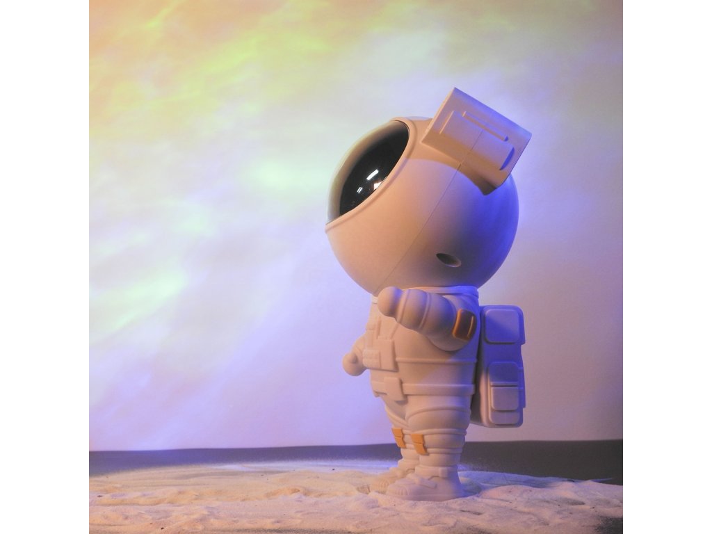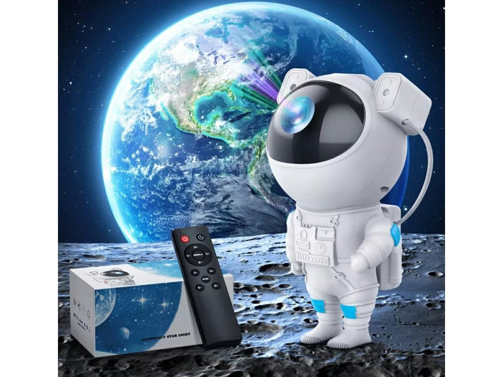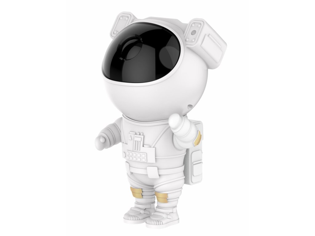 Neobvyklý LED projektor hvězd ve tvaru astronauta. Vestavěný laser umožňuje promítat hvězdy nebo galaxie až v 8 režimech. Otočná hlava (360 stupňů) umožňuje projekci v široké rovině a s velkým dosahem. Možnost nastavení jasu LED diod, rychlosti otáčení a doby provozu. Pohodlné IR dálkové ovládání usnadňuje umístění projektoru na dálku. Atraktivní vzhled a mnoho možností nastavení z něj dělají perfektní dárek pro dítě.
