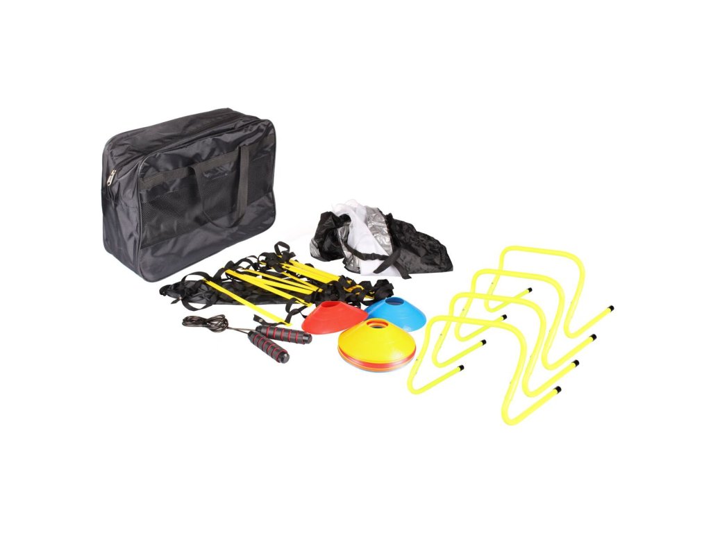 Agility set Merco Advanced Kit je praktická pomůcka pro vaše tréninky v tělocvičně či venku. Agility překážky se hodí pro sportovce všech sportovních odvětví, kluby a školy. Díky agility sadě si zlepšujete svou kondici, efektivně trénujete rychlost a koordinaci dolních i horních končetin. Sada pro pokročilý trénink Merco Advanced Kit obsahuje odporový padák pro běhání, dvacet vytyčovacích met, jeden agility žebřík s nastavitelnými lamelami a délkou 6 m, švihadlo a čtyři překážky na přeskoky s výškou 22 cm. Součástí sady je i praktická taška z polyesteru pro snadné přenášení a uskladnění mezi jednotlivými tréninky. ADVANCED KIT: - set: 1x agility žebřík, 20x vytyčovací meta, 1x odporový padák, 1x švihadlo, 4x překážka - materiál: polypropylen, polyester - hmotnost sady: cca 3,2 kg - součástí praktický bag - pro individuální trénink i pro celý týmDodatočné parametre