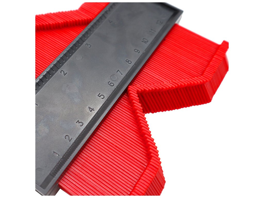 Šablona umožňuje snadno a rychle obkreslit tvary a přenést je na materiál. Snadno tak můžete vyříznout půlkruhy pro trubku nebo obkreslit tvar rámu dveří. Šablona je široká 145 mm, takže ji můžete použít k obkreslení několika dílů najednou.