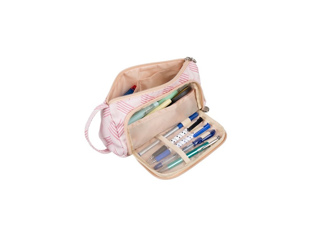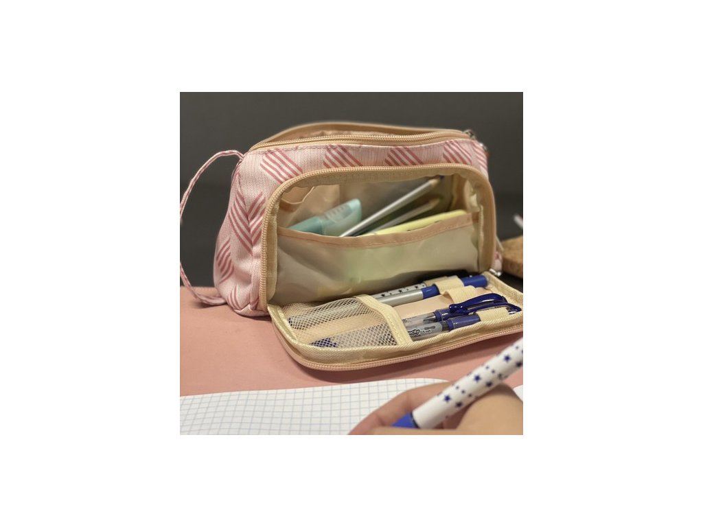 - SNADNÝ PŘÍSTUP K OBSAHU - má penál dva zipy: jeden pro otevření hlavní velké komory a druhý, menší, pro otevření klopy . Díky tomuto řešení je přístup ke všem částem penálu rychlý a pohodlný. Po otevření chlopně navíc získáte dobrý přístup do hlavní komory, což usnadňuje organizaci a používání penálu.