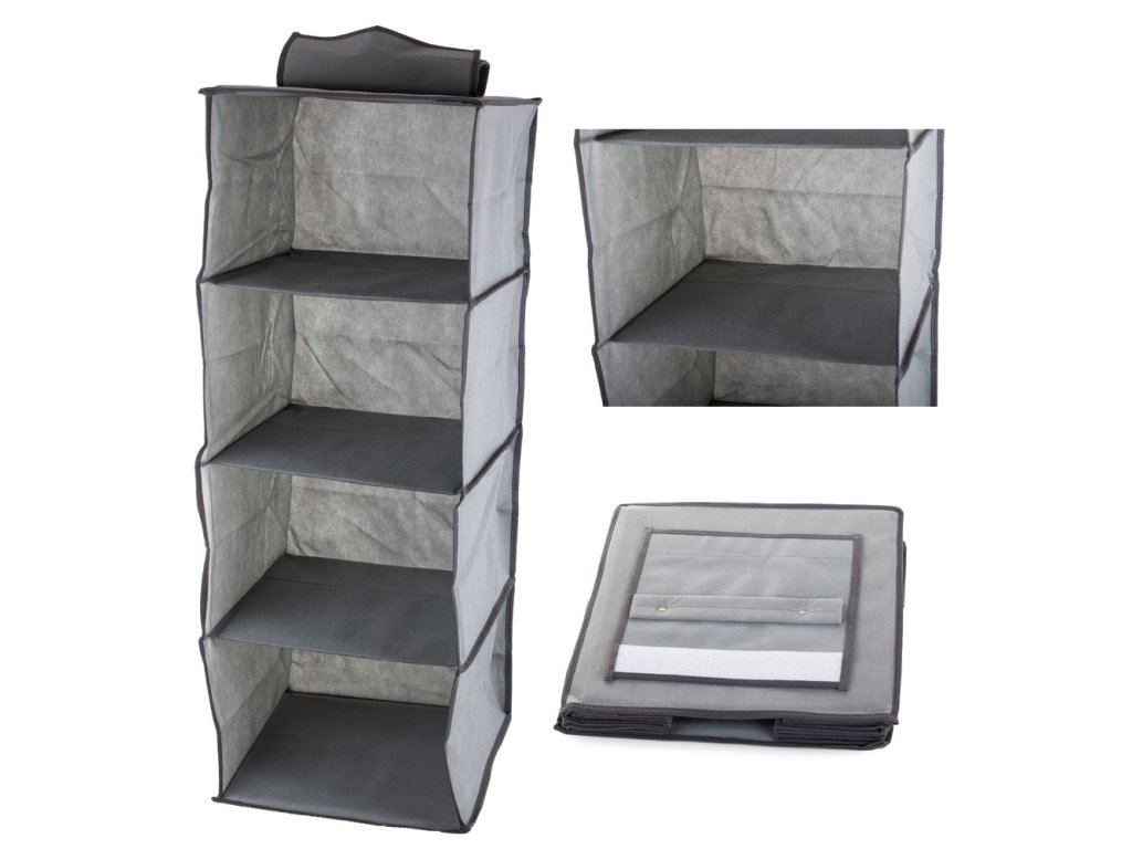 Závěsná police efektivně šetří místo ve vaší šatní skříni. Čtyři prostorné police vám dávají možnost volně rozdělit oblečení a zároveň zabírají málo místa. Organizér vám zajistí pořádek a dokonale ochrání vaše oblečení a lůžkoviny před prachem a dalšími vnějšími vlivy. Je vyroben z vysoce kvalitního materiálu, který zaručuje dlouhou životnost.