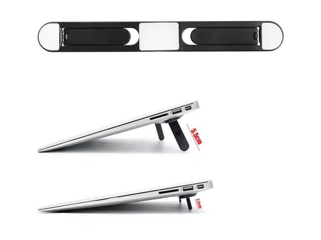 - Skládací plastový stojan na notebook s lehkou a pevnou konstrukcí.