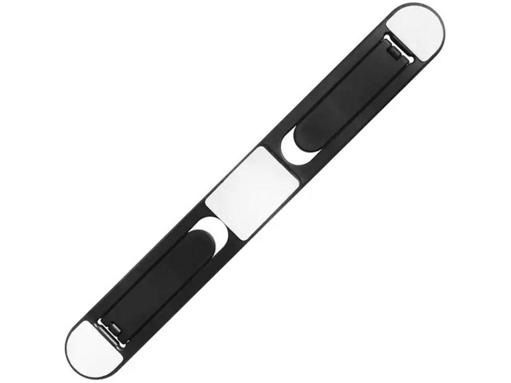 Skládací plastový stojan na notebook. Vyznačuje se lehkou a pevnou konstrukcí. Umožňuje pohodlné používání notebooku, zajišťuje dostatečnou cirkulaci vzduchu. Dvoustupňové nastavení sklonu zajišťuje přizpůsobení úhlu sklonu potřebám uživatele. Jedná se o extrémně ergonomické řešení, které zvyšuje komfort používání notebooku. Nastavení ramen umožňuje umístit na stojan menší zařízení, jako jsou tablety. Speciální podložky vyrobené z oboustranné pásky umožňují přilepit stojan k povrchu notebooku.Vlastnosti produktu: