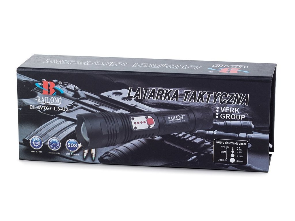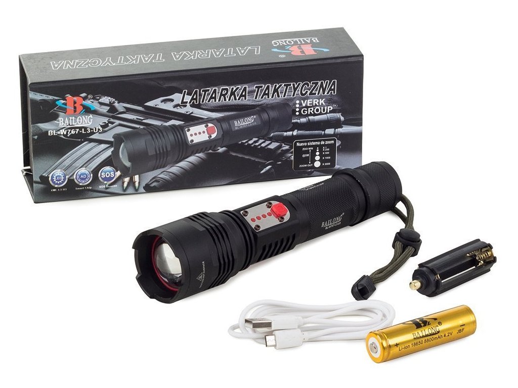 Verk 08287 Vojenská USB ZOOM svítilna Bailong cree XM-L T6 model W767 AKCE