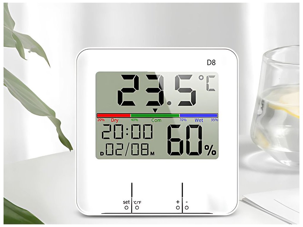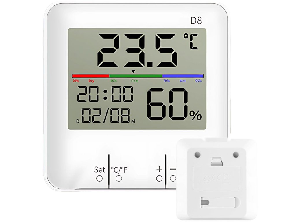 Moderní meteostanice pro vnitřní použití, která kombinuje funkce teploměru, vlhkoměru, hodin a kalendáře. Díky velkému a dobře čitelnému LCD displeji můžete na první pohled zkontrolovat teplotu, vlhkost a čas a datum. Je to ideální zařízení do domácnosti, kanceláře, ložnice nebo dětského pokoje.