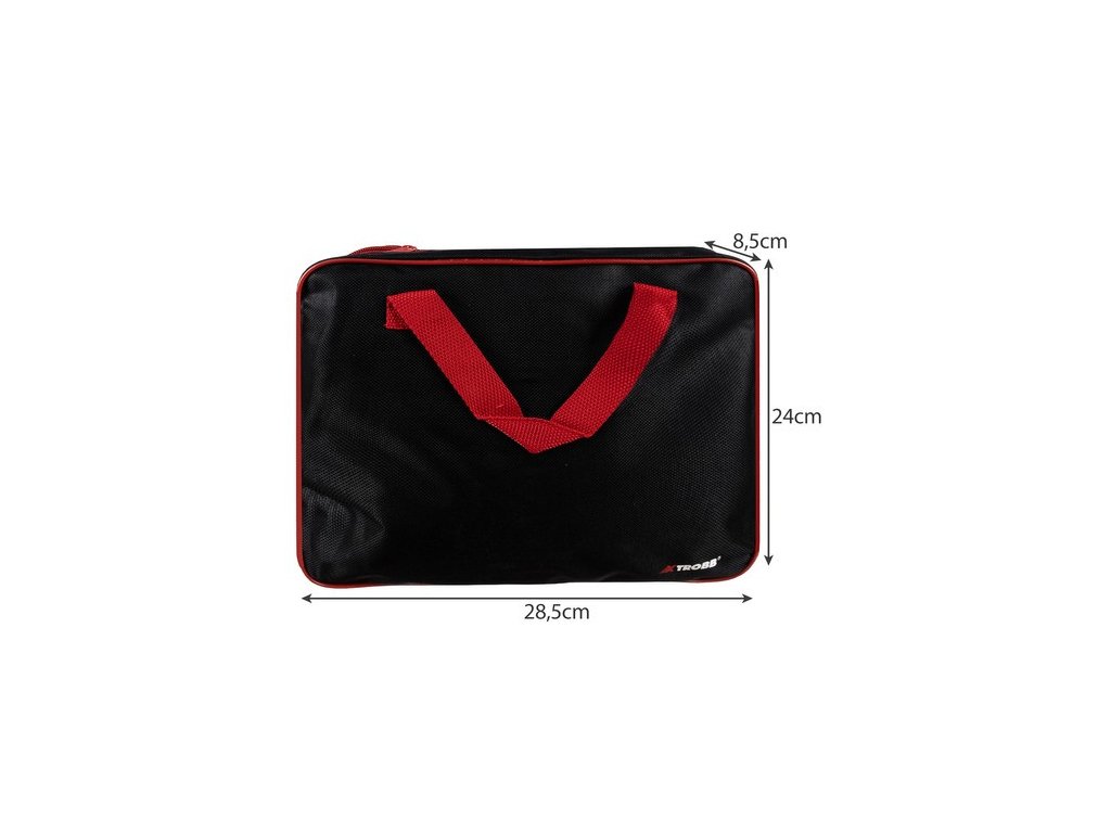 - SPECIFIKACE - materiál: polyester, mikrovlákno, plast; barva: černá, červená; počet příslušenství: 19; rozměry: 28,5 x 24 x 8,5 cm; hmotnost: 1,20 kg; hmotnost balíku: 1 250 kg.
