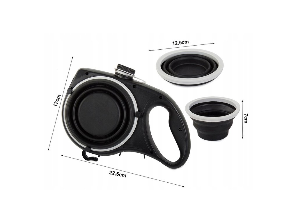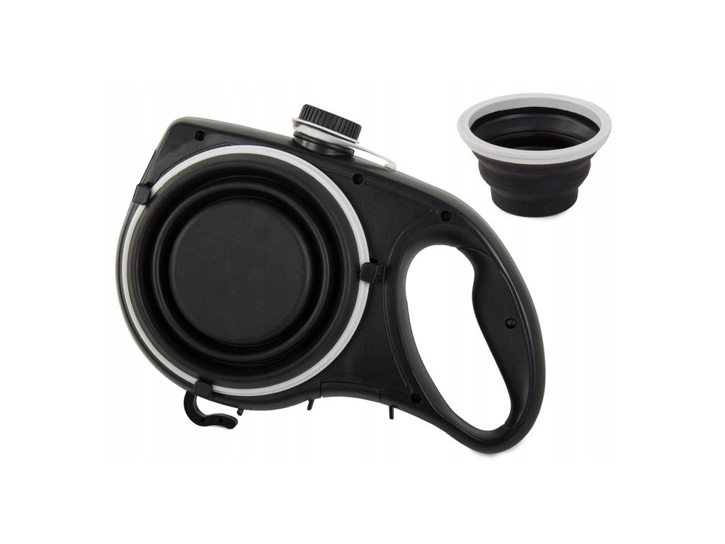 Vodítko s nádržkou na vodu a silikonovou skládací miskou pro dlouhé procházky během horkých letních dní.