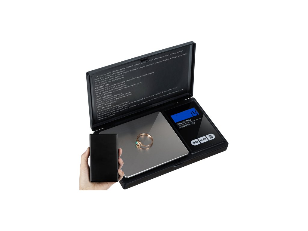 Přesná elektronická váha na šperky 0,1g až 500g s podsvíceným displejem