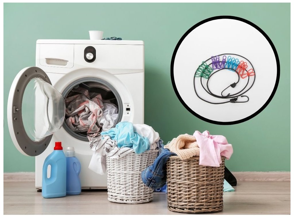 ELASTICKÉ LANO NA PRANÍ PRÁDLA S 12 KUSY PŘEZEK CESTOVNÍ KLIPY NA PRÁDLO