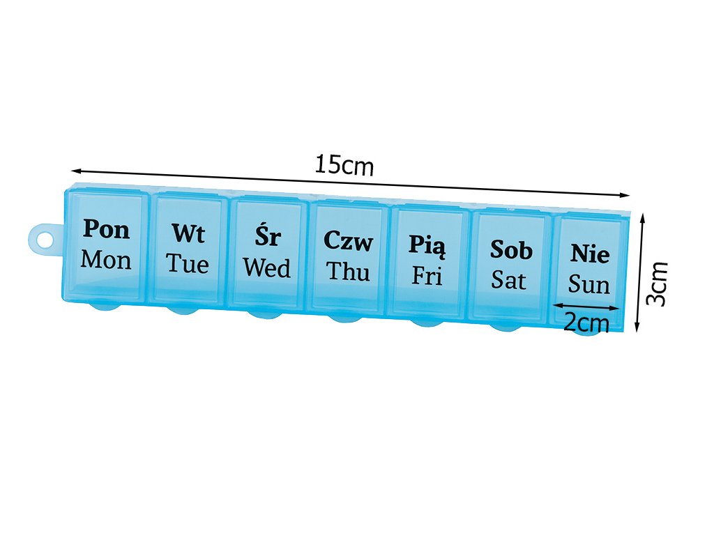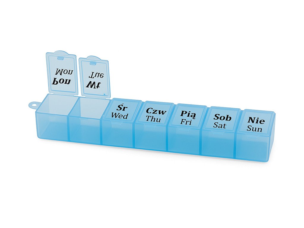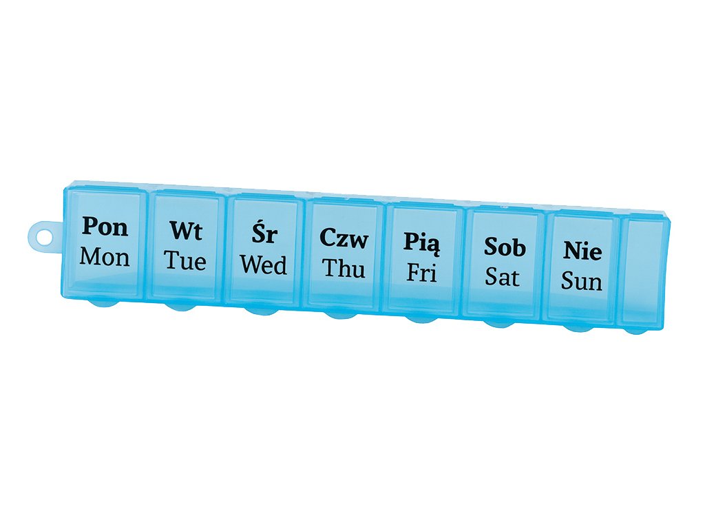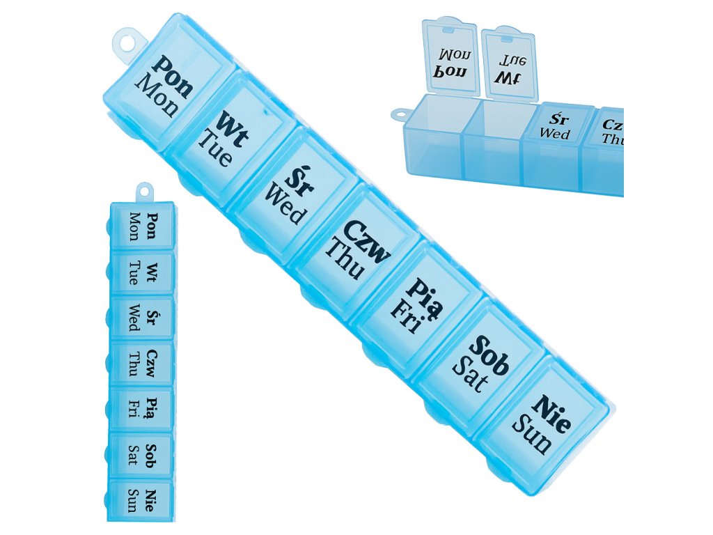 Týdenní zásobník na léky je sada sedmi plastových krabiček v jedné společné kazetě. Ideální řešení pro přípravu léků na celý týden, zejména pro chronicky nemocné osoby.