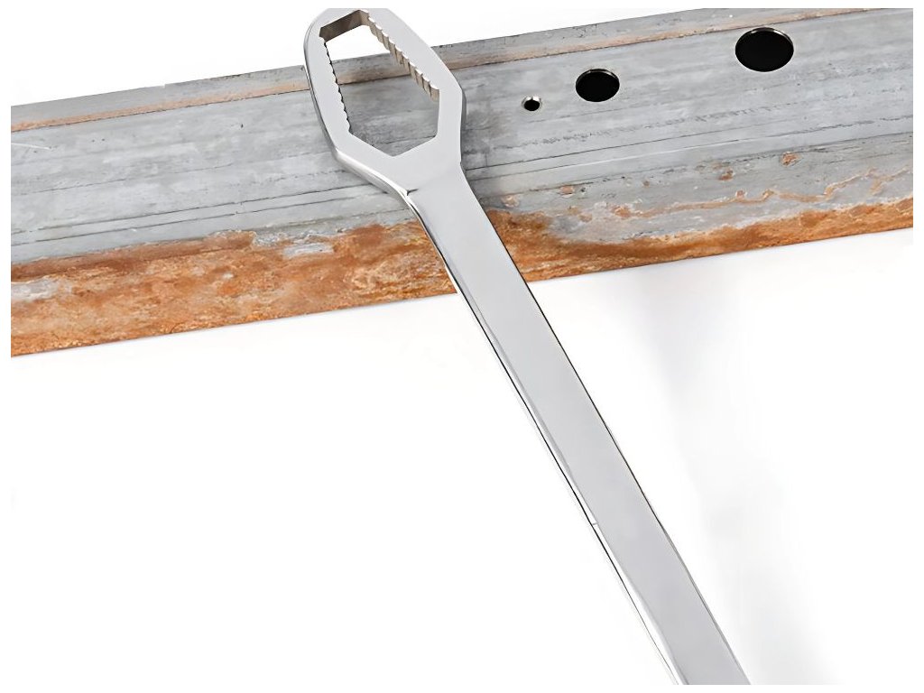 Tento model klíče je ideální pro práci na jízdních kolech, motocyklech, automobilech nebo instalatérské práce. Jeho ergonomický tvar usnadňuje přístup do těžko přístupných míst, zatímco vroubkovaný vnitřek zajišťuje pevné uchopení šroubu, aniž by nástroj vyklouzl.