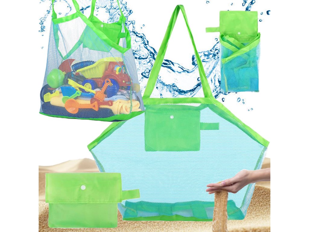 Hledáte lehkou, prostornou a praktickou tašku, do které se vejde vše potřebné na pláž nebo k bazénu Tato obrovská síťovaná taška je ideálním řešením! Vejdou se do ní ručníky, hračky, oblečení, nákup a dokonce i kbelík s pádlem. Díky vzdušnému designu z ní písek a voda samy vypadávají - není třeba je šlehat!