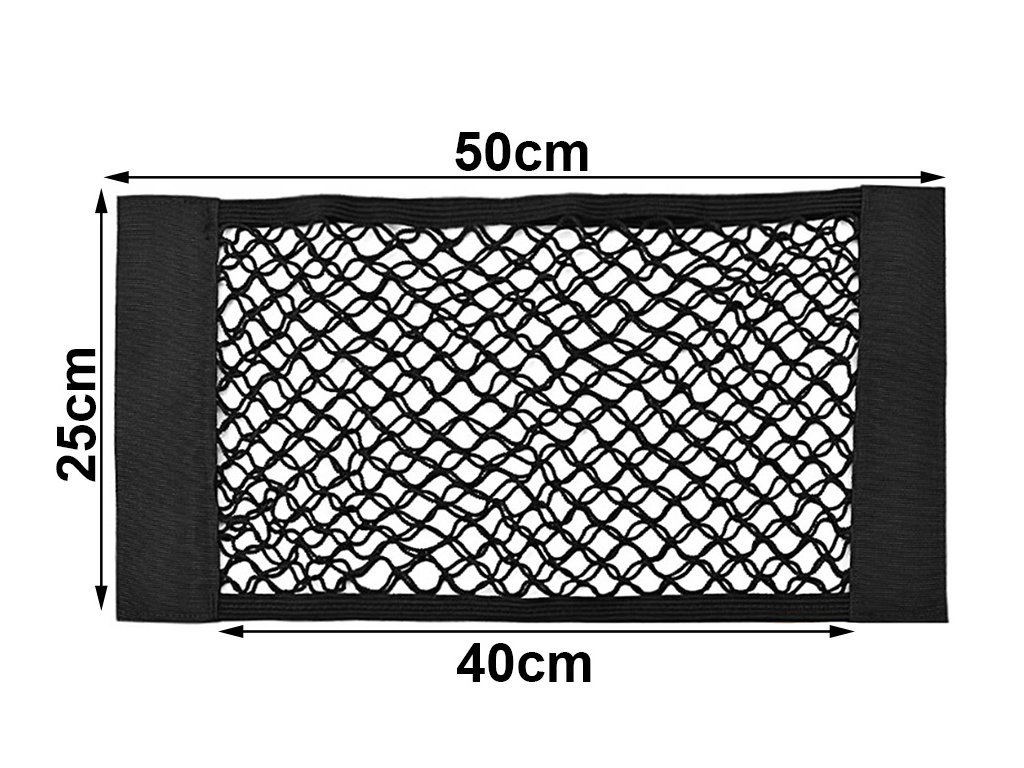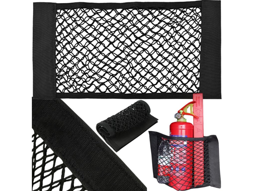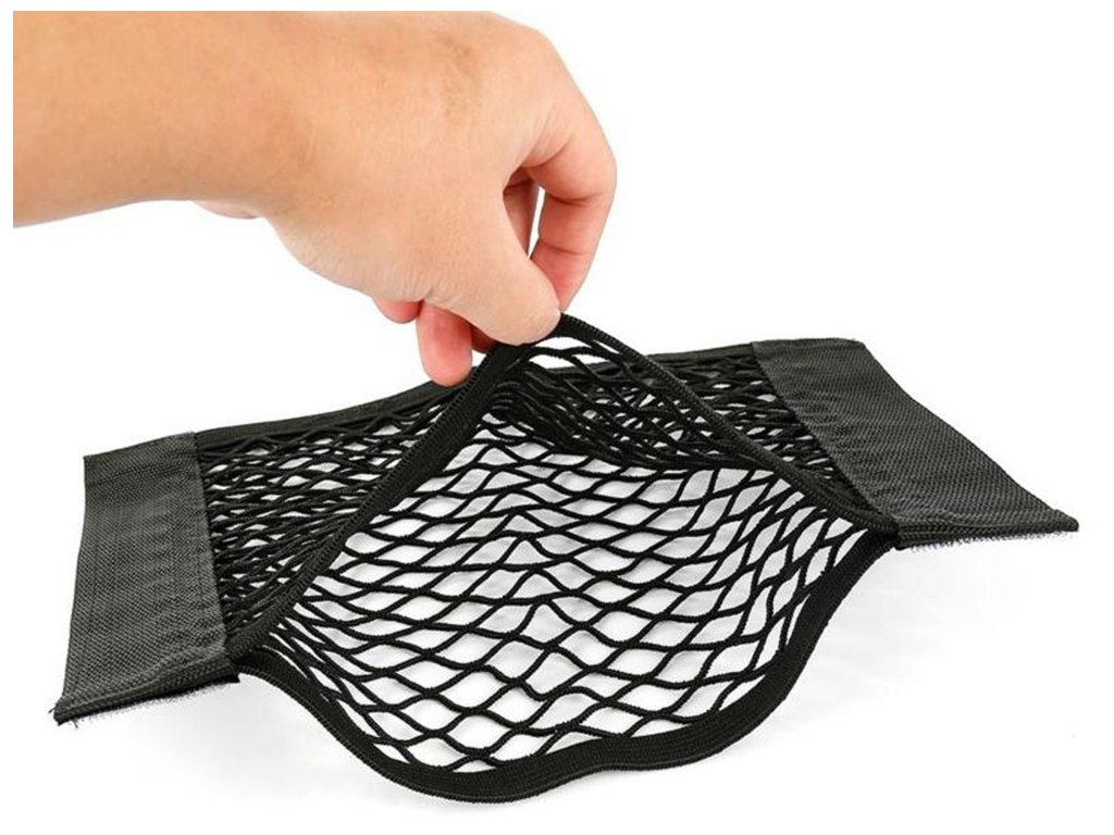 Pružná síťovina je odolná proti roztažení, neztrácí tvar ani se pod tlakem neláme. Díky velké ploše 50 × 25 cm do ní snadno umístíte větší láhve, nádoby, nouzové soupravy nebo drobný nákup. Materiál se snadno udržuje v čistotě - stačí jej otřít vlhkým hadříkem.