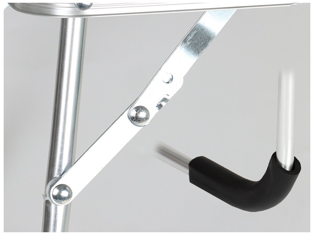 Protiskluzové podložky na nohách pak zabraňují pohybu stolu. Díky sklopným nohám zabírá stůl ve složeném stavu jen velmi málo místa. Panty ve stolku se uzamknou, takže se nemusíte bát, že by se stolek sám složil.