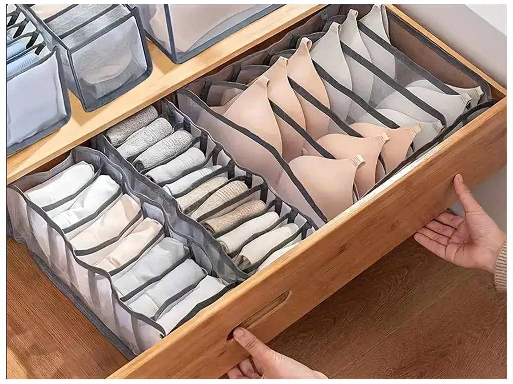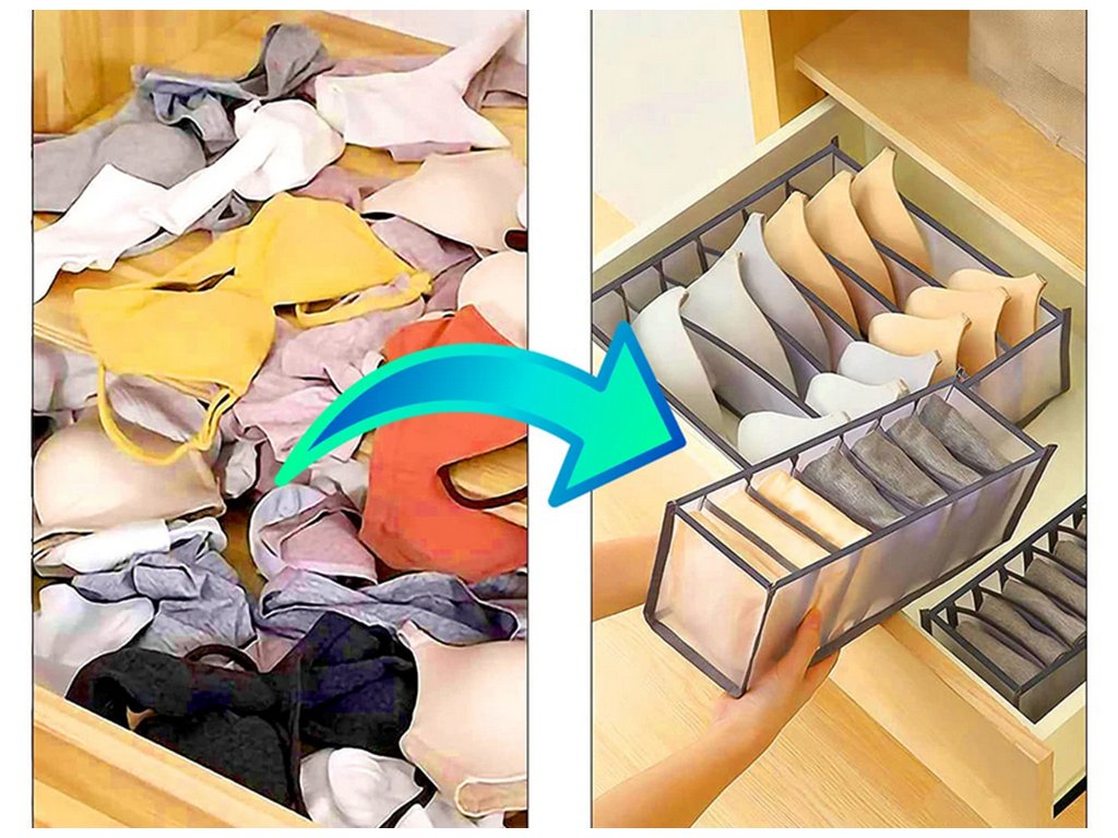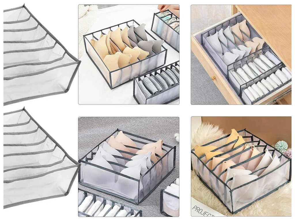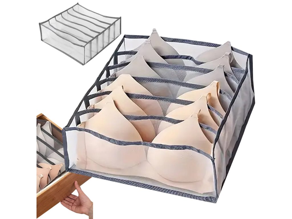 Organizér na spodní prádlo je ideální do všech druhů zásuvek nebo na dno šatní skříně. Má 6 přihrádek, takže v zásuvkách se spodním prádlem můžete mít pořádek.