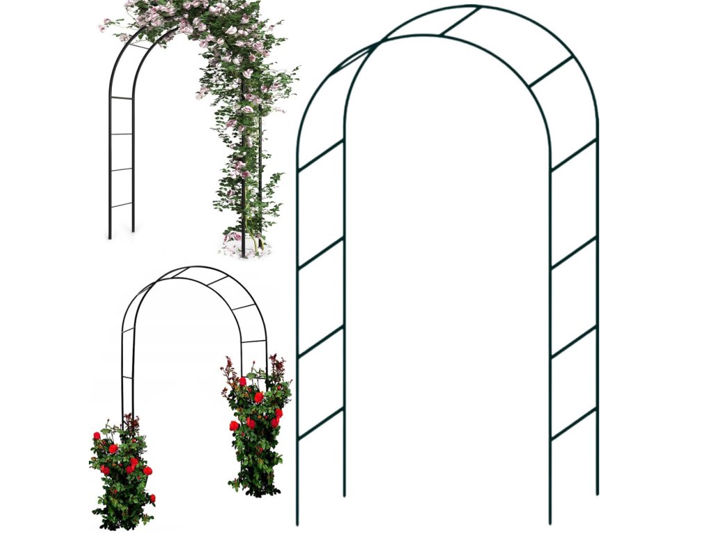 Konstrukce v podobě půlkruhového oblouku vytváří elegantní a funkční průchod, který se perfektně hodí do různých zahradních aranžmá.