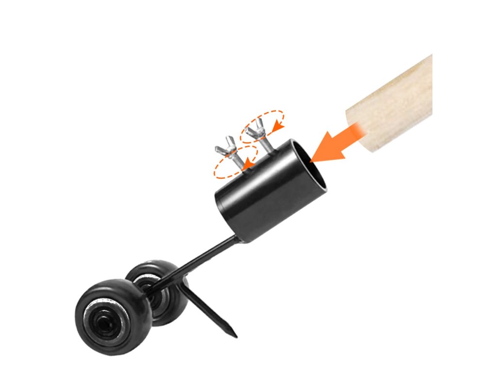 Univerzální škrabka na kolečkách, určená pro odstraňování trávy a plevele z dlažby. Ostrý hrot je perfektní pro vytrhávání nežádoucího plevele ze spár a spár mezi dlažebními kostkami. Robustní šroubový držák umožňuje připevnění škrabky ke standardnímu zahradnímu nářadí nebo klacek.
