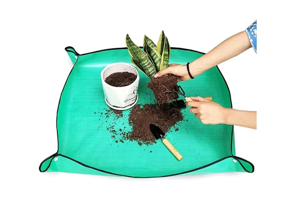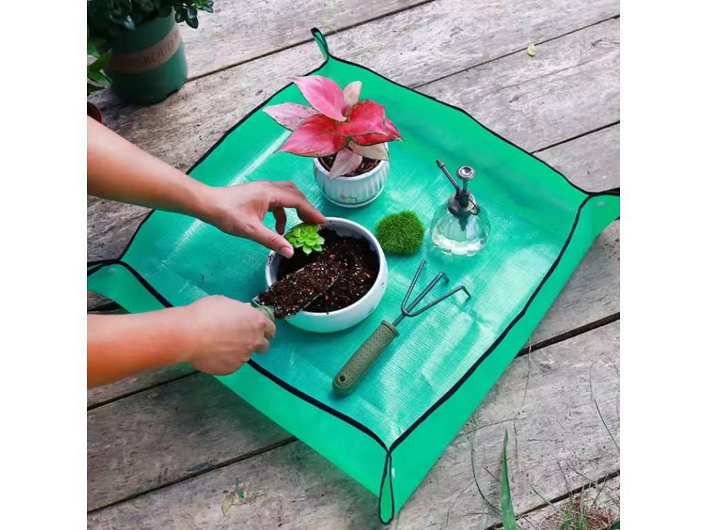 Velká podložka pro přesazování rostlin. Umožňuje pohodlně přenášet rostliny a půdu do květináčů bez znečištění povrchu. Vyrobeno z odolného a voděodolného materiálu, který zabraňuje rozsypání půdy a zaplavení plochy vodou. Vybaven čtyřmi silnými západkami, které vám umožní vytvořit velký pracovní prostor pro práci na zahradě. Rohož se snadno čistí a ve složeném stavu zabírá málo místa, což usnadňuje přepravu.