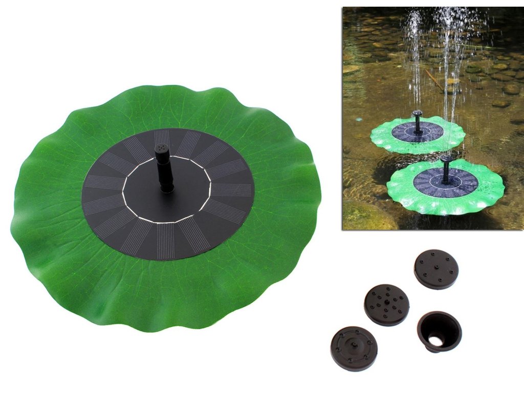 Solární fontána s jezírkovým čerpadlem, poháněná solární energií! Atraktivní tvar plovoucího listu skrývá čerpací zařízení! Použití speciálního solárního panelu eliminuje potřebu použití dalšího zdroje energie. Nádhernou vodní kaskádu si užijete i v místech s nedostatkem elektřiny.