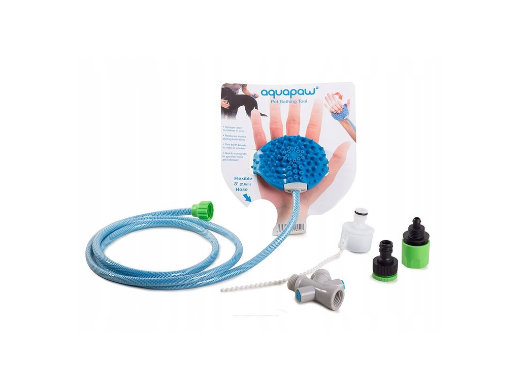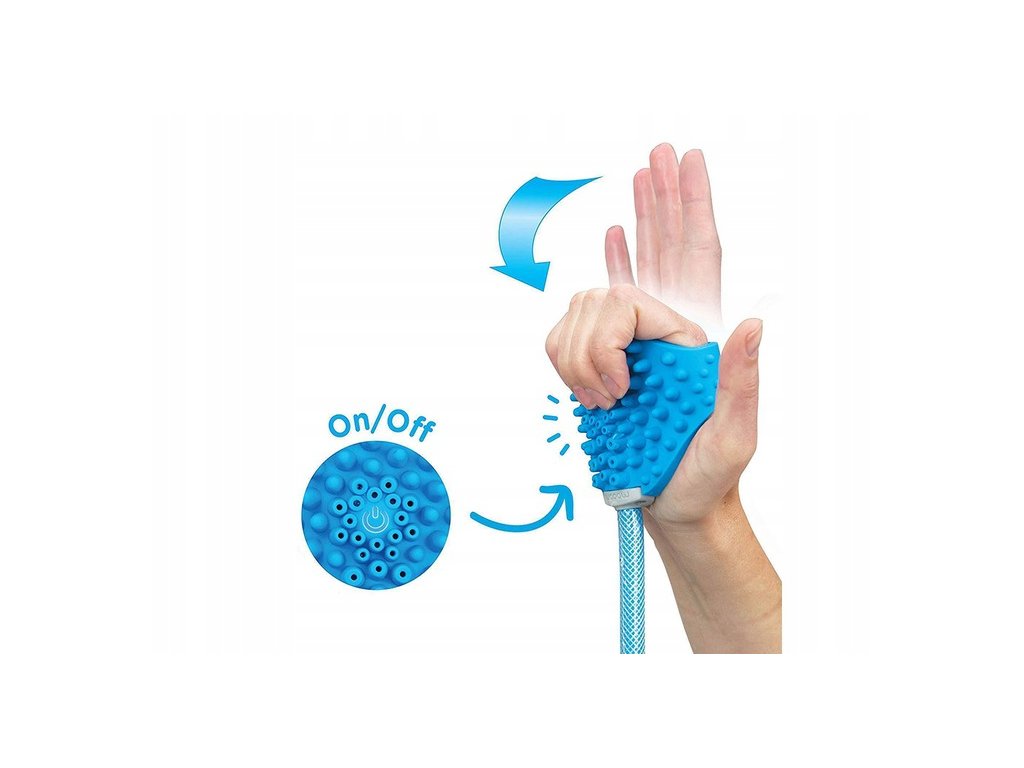 Sprcha je určena ke koupání domácích zvířat doma i na zahradě. Kartáč s mnoha výstupky promasíruje a prokrví pokožku, zlepší vzhled srsti vašeho mazlíčka a zároveň ji důkladně umyje. Díky tlačítku umístěnému ve středu kartáče můžete sprchu rychle zapínat a vypínat, aniž byste museli vypínat kohoutek. Konstrukce umožňuje umístit jej na levou i na pravou ruku.